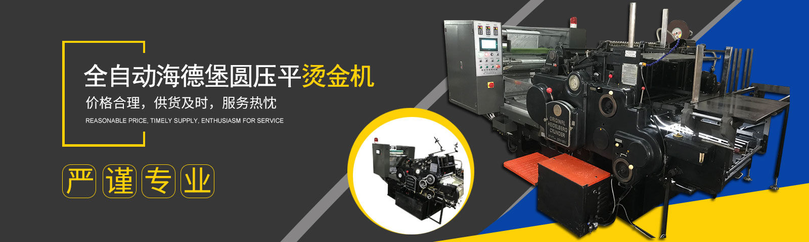 、全自動海德堡圓壓平燙金機,模切機,壓紋機的企業,全自動圓壓平,銷售的產品系列規格齊全,產品具有速度快,壓力均勻,套印準確等特點。