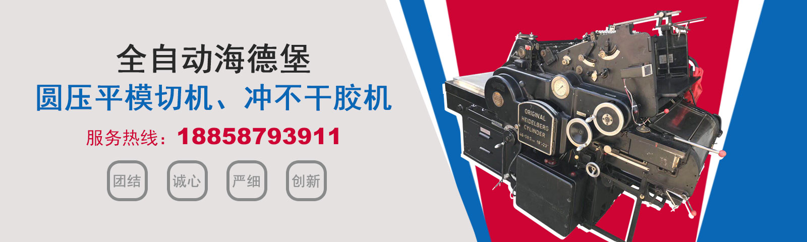 瑞安市恒柯機械廠(www_wzhkjx_com.ysyhy.com)是國內專業制造銷售全自動模切機,全自動燙金機,圓壓平模切機,圓壓平燙金機,滾筒燙金機,沖不干膠機,海德堡凸印機.銷售的產品系列規格齊全,產品具有速度快,壓力均勻,套印準確等特點。